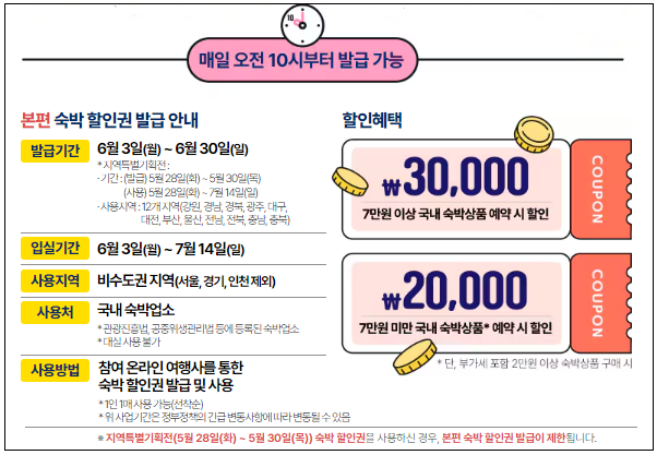 ※ 지역특별기획전(5월 28일(화) ~ 5월 30일(목)) 숙박 할인권을 사용하신 경우, 본편 숙박 할인권 발급이 제한됩니다.