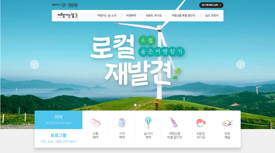 6월에는 교통,숙박, 놀거리 할인 무료 등의 혜택이 가득한 [여행가는 달- 6월 숨은 여행 찾기] 여행이벤트가 시작이 됩니다 . 6월 무료여행 이벤트 당첨자 발표와 함께 다양한 할인 행사들이 이어지니 꼭 들어가셔서 확인하시고 즐거운 여행하기시 바랍니다.